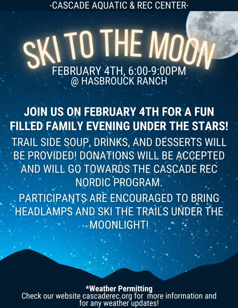 Trail-side soup, drinks, and desserts will be provided! Donations will be accepted and will go towards the Cascade Rec Nordic Program.